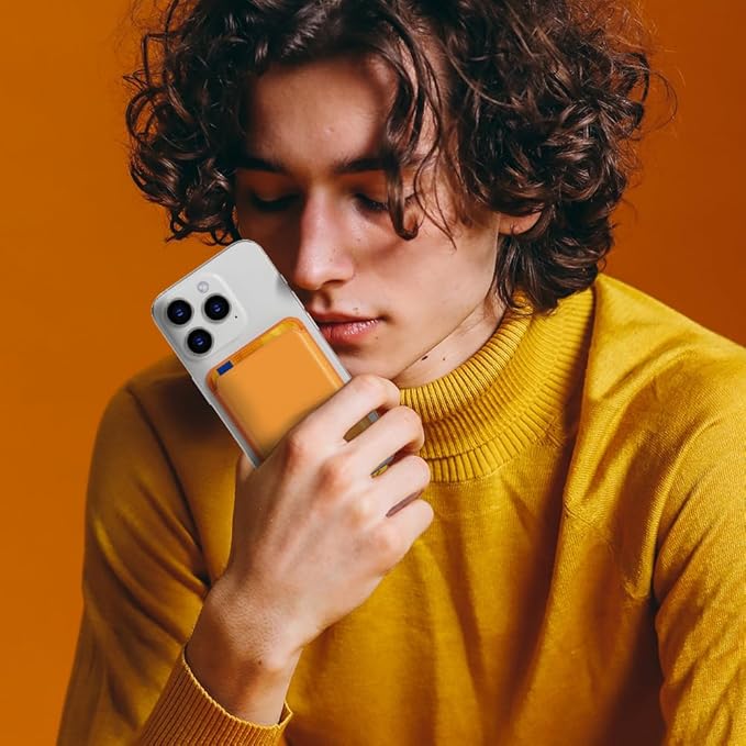 UNIDOCK Orange Leather Magnetic Phone Wallet - Mag Wallet RFID